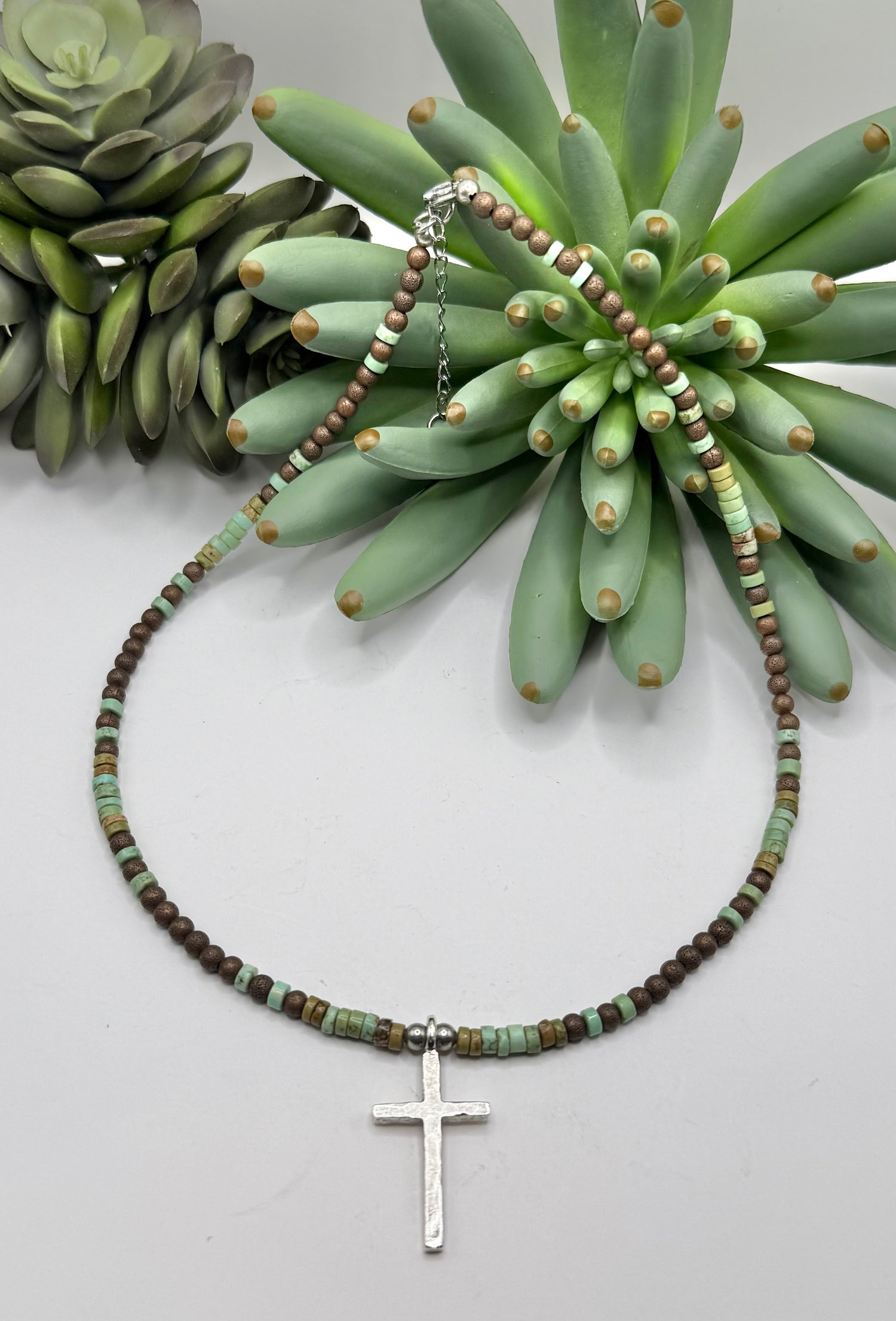 Blended Bead & Silver Cross Necklace - 2 Colors