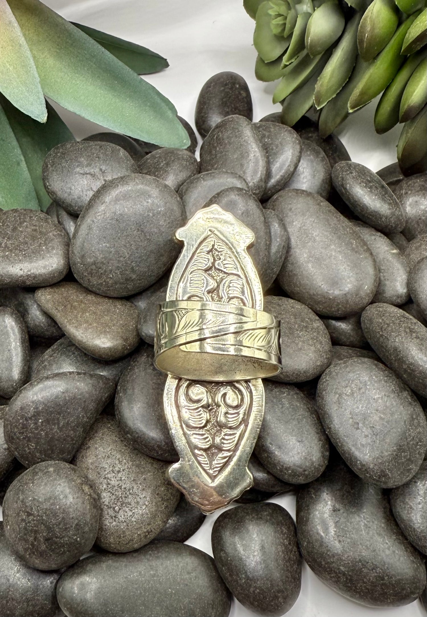 The Double Set Turquoise Ring features two striking turquoise stones set within an intricately designed silver band. Measuring approximately 0.75 inches by 2.50 inches, this adjustable ring accommodates most finger sizes, ensuring both comfort and versatility in wear.