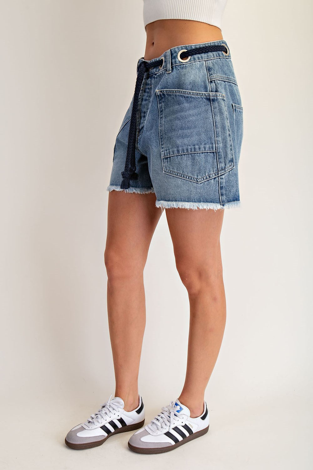 Rope Drawstring Waist Denim Shorts