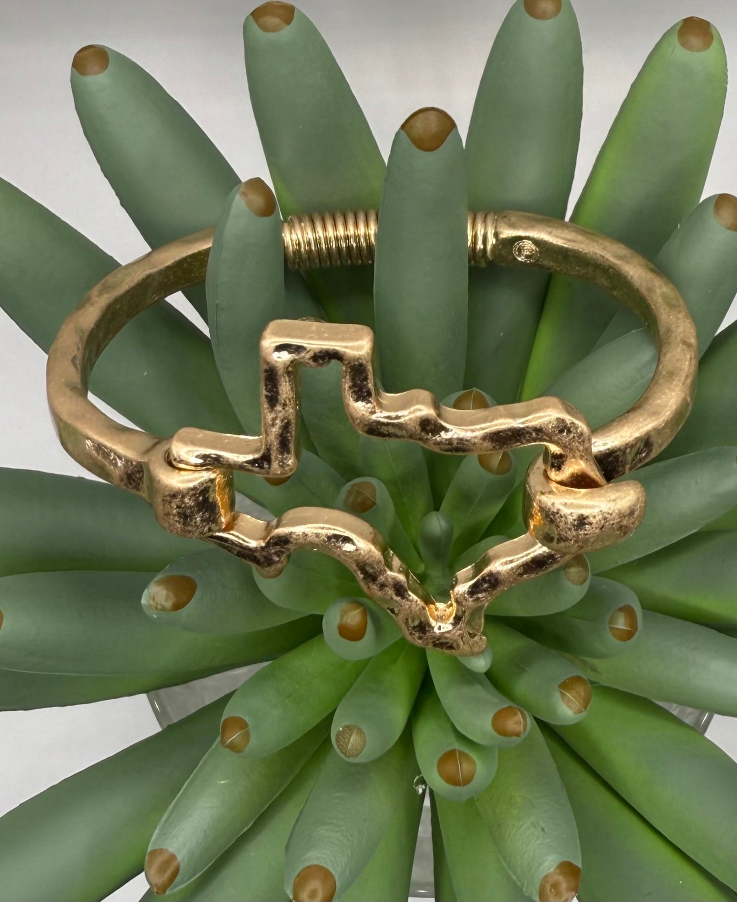 Show your Texas spirit with this antique gold spring loaded bracelet.